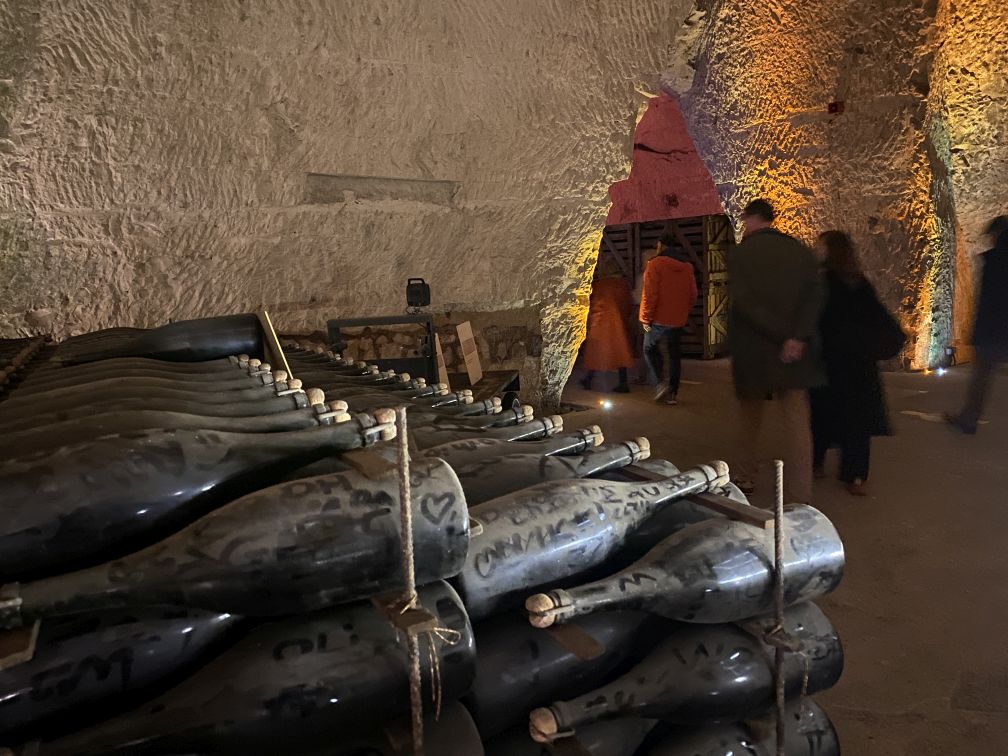 Bei Veuve Cliquot steht das Degorgierdatum immerhin auf den Etiketten der Jahrgangschampagner. Bei den „Standard“-Abfüllungen möge man beim Händler fragen, wie schnell man die Flaschen zu leeren habe, erläuterte uns die freundliche junge Dame, die uns durch die Keller führte.